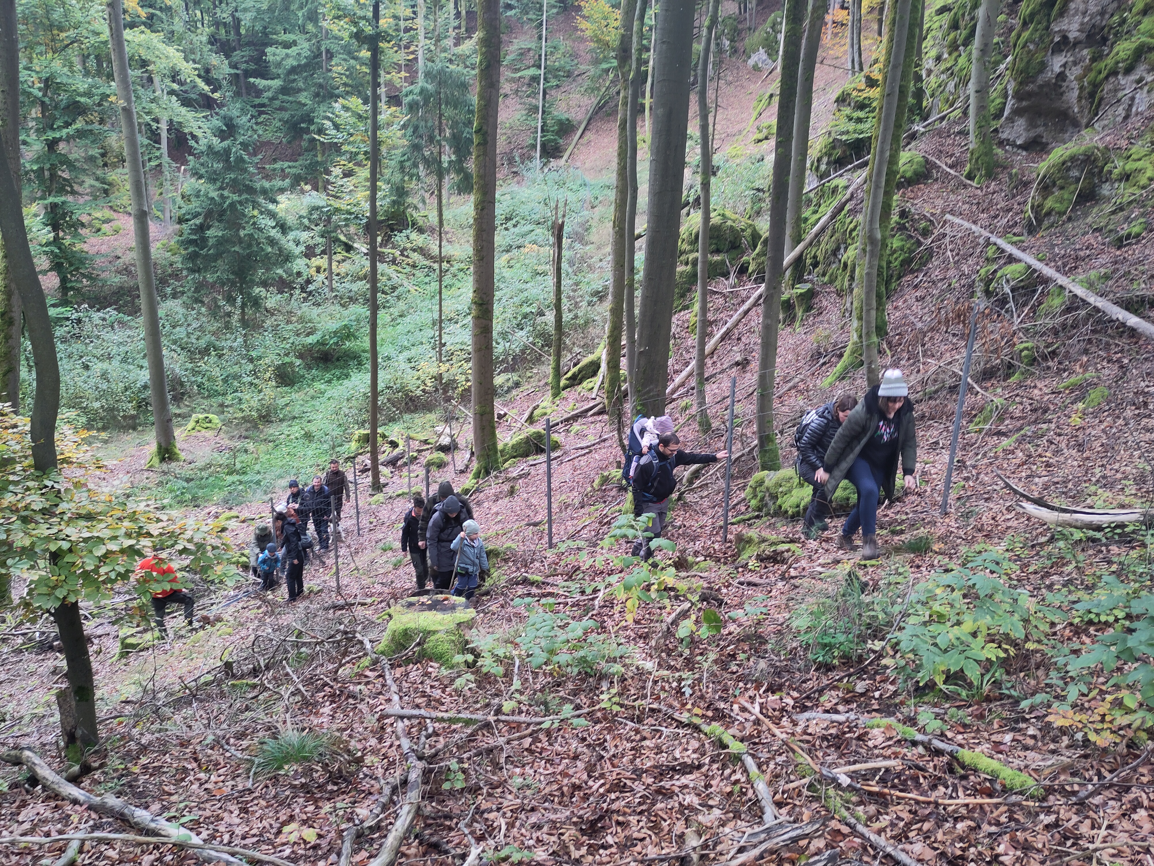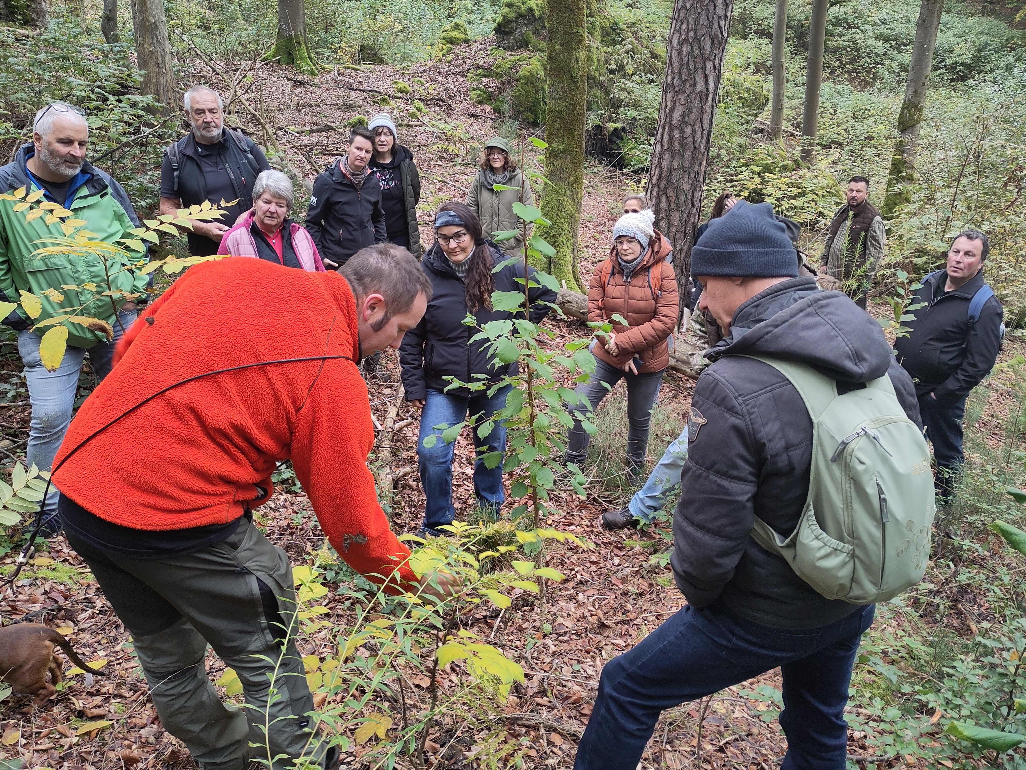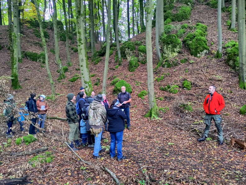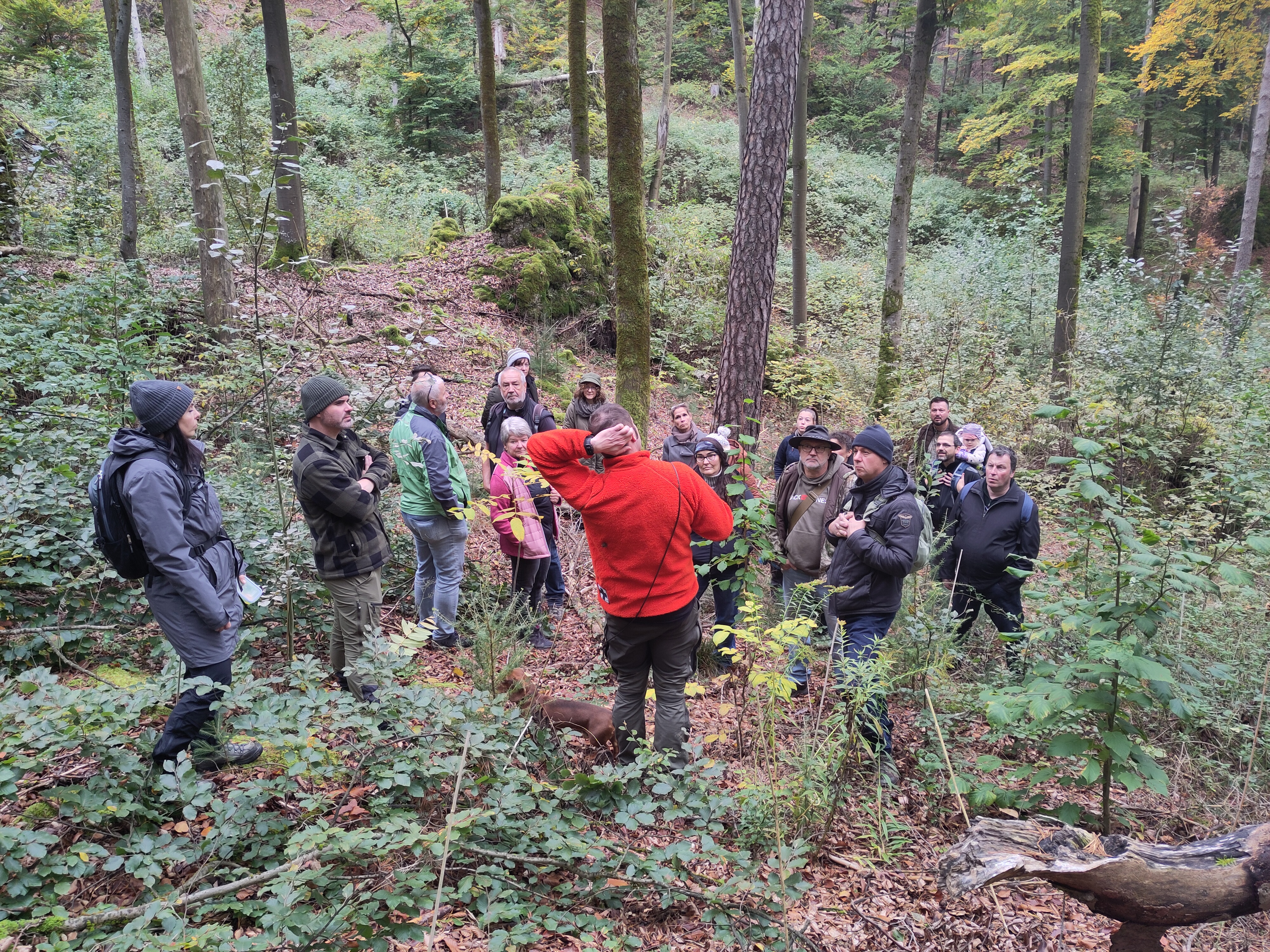 Dipl. Forstwirt Olaf Legeler führte uns in einer dreistündigen Wanderung durch unsere heimischen Wälder und erläuterte die Wichtigkeit neuer Baumsorten, um die Wälder für den Klimawandel fit zumachen sowie die Probleme, die die fränkische Realteilung der Wälder beim Bewirtschaften mit sich bringt. Danach ging´s zum Mittagessen ins Gasthaus "Zur Traube" in Plech.
